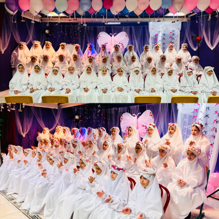 جشن عبادتِ دختران نازنینمان، لحظه‌ای بود پر از آرامش، ایمان و شکوفه‌های مهربانی…